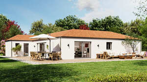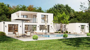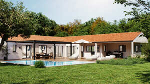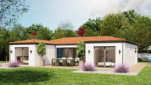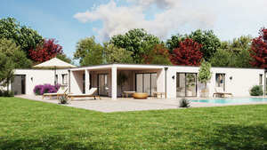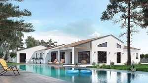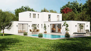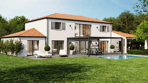 Les 2 maisons sont reliées par un immense abri et ont chacune un grand séjour cuisine ouvert sur le jardin paysagé par de larges baies vitrées…
